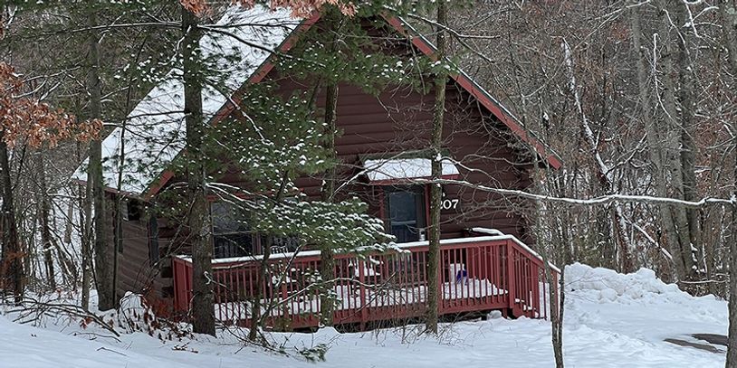 Christmas Mountain Village's log cabins offer a warm, cozy, atmosphere complete with a wood burning or gas fireplace, set amongst towering pines.